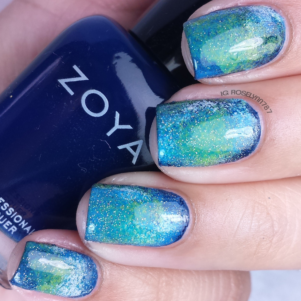 In honor of the Zoya Earth Day Promo, I decided to whip out all of my best Zoya blues (and my favorite bright green) for this mani. I didn't make a video, but if it's something that you would like just let me know down in the comments.