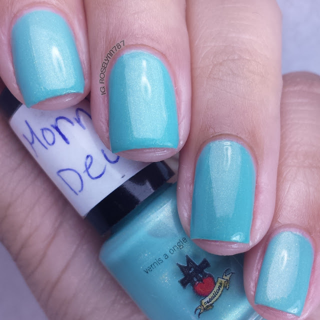 April Showers is a iridescent topper with a green shimmer throughout. Believe it or not, I previously did not have an iridescent topper that I was in love with. Needless to say, this one was definitely a nice change of pace from the norm for me. I love how much it transforms the base into something magical - it's like turning a bird into a unicorn haha. Great formula and applied evenly without cluttering. Swatched here over Misty Mornings using two thin coats and sealed with Seche Vite topcoat.